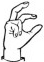 На ћирилици написано СУЗАНА САРКАЊАЦ састоји се из 14 слова [?]. Исписано ћириличном једноручном азбуком за глувонеме: